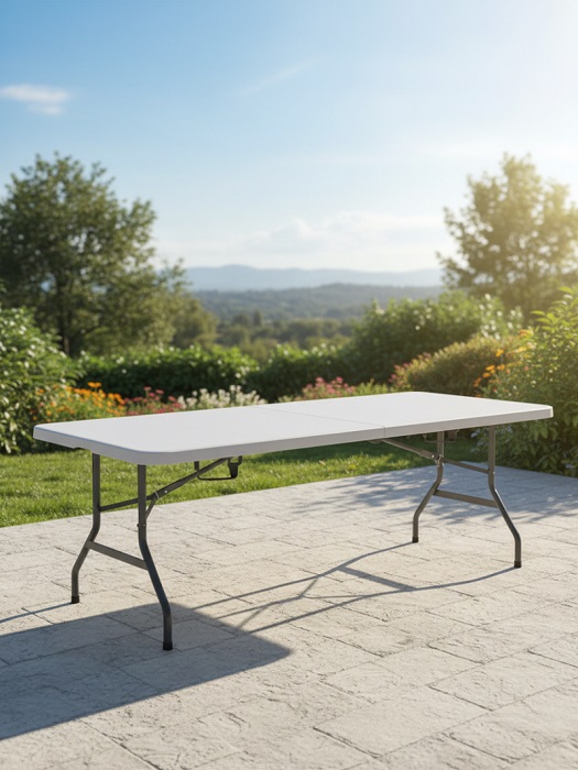 Решение-хит для пикника, выездного мероприятия, кейтеринга. Стол удобно складвывается в книжку, с помощью ручки его удобно транспортировать . Раскладка в один клик.
